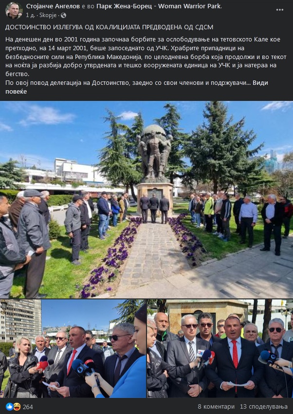 Претседателот на Достоинство и директор на ЦУК, Стојанче Ангелов, преку неговиот профил на Фејсбук извести дека причина за напуштање на коалицијата се неисполнетите барања за надоместок за десетици бранители на Македонија во конфликтот од 2001 година.