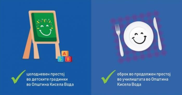 Општина Кисела Вода денеска информира дека од новата учебна година ќе ги субвенционира месечните сметки за дневниот оброк во продолжен престој во општинските основни училишта, а средства се обезбедени и за целодневниот престој на деца од семејства во социјален ризик во јавните детски градинки во оваа локална самоуправа.