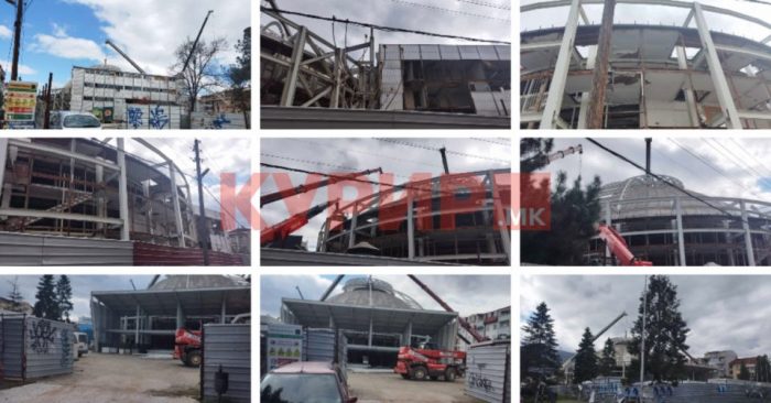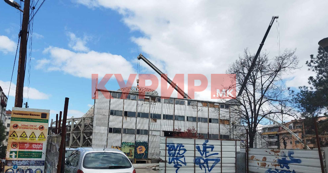 КУРИР денес направи фотографии од зад лимените тараби. Рушевините кои буквално се недопрени за реконструкција се сведок на немилата “судбина“ на Универзалната сала. Две машини и двајца работници се единственото нешто кое го затекнавме таму.