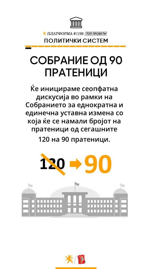 Ќе иницираме сеопфатна дискусија во рамки на Собранието за еднократна и единечна уставна измена со која ќе се намали бројот на пратеници, рече Мицкоски зборувајќи за нивните планови околу уредувањето на македонскиот политички систем.