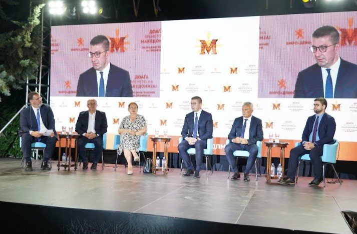 „Од друга страна наспроти нашите напори и борби, имаме опозиција која боледува од вирусот на безидејноста, која не извлече ниту една лекција зошто се таму каде што се и во таква една ситуација толку се слаби што, во овој момент некогаш големата СДСМ се сведе да биде застапник на одредени бугарски интереси и да е за жал, нивната продолжена рака. И втората работа, која што исто така е карактеристична за СДСМ е да се борат на овие избори, не со тоа тие каков концепт ќе понудат, туку да работат по секоја цена ДУИ да има добар резултат и да ја спасуваат политичката кариера на политичарите од ДУИ, меѓу нив и Али Ахмети. Од некогаш големата СДСМ, станаа само на овие локални избори, овие две работи. И за овие две работи кои ги тврдам, има и конкретни чекори кои ги преземаат. Видете кој најгласно во Македонија зборува за уставните измени, чиви полуги слугуваат на оние пропагандни и пред се лажни текстови каде се бројат измислени пасоши за македонски политичари. Без задршка, без ограда излегува претседателот на СДСМ и зборува дека беусловно ќе го променел Уставот и ќе ги вметнел Бугарите во Уставот. Сега ми е јасно, зошто ја отфрлија секоја подадена рака од моја страна за државно единство за националните прашања. Затоа што во СДСМ политичарите се на копче. И тоа го прават притиснати од својата безидејност и концесии од минатото. И затоа толку на ниско ја водат политиката. Нема несреќа која не ја злоупотребија и судбина која не ја искористија. Нема пожар за кој не направија прес-конференција, а сите знаеме дека најголемиот дел од нив се подметнати. Тие се водат од тоа колку полошо за народот, толку подобро за СДСМ. Значи вниманието кон себе не го вртат со работа или труд, туку со поделби, со омраза и со слугување. И затоа, тие кога знаат дека не се конкурентни со работа, идеи и концепти, нивната задача е ДУИ да го помогнат на овие избори. Затоа станаа нивен изведувач во политиката, за да спасат кариери, но така спасуваат и бизниси кои си ги почнаа додека заедно беа на власт. Народот не им верува и затоа воопшто немаат доверба. Неодговорно е таковото однесување кон самите себе, но и кон Македонија“, посочи премиерот.