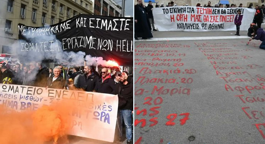 Во Атина имаше повеќе од 20.000 демонстранти. Некои од нив фрлаа молотови коктели пред парламентот, а полицијата одговори со фрлање солзавец пред да се растера толпата, пренесува АФП. Исто така надвор од парламентот, други со црвено ги напишаа имињата на 57-те луѓе кои загинаа на 28 февруари 2023 година во најсмртоносниот судир во грчката историја.