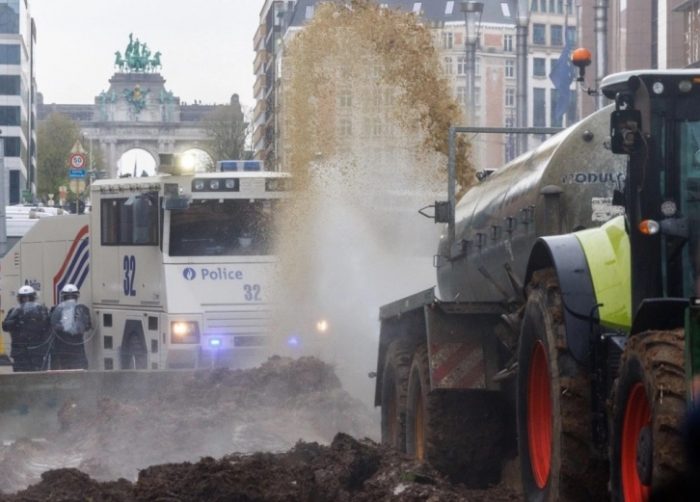 Бриселската полиција употреби солзавец за ги спречи незадоволните земјоделци да ги пробијат полициските барикади и да се упатат кон плоштадот „Шуман“ во Брисел, каде што се наоѓаат зградите повеќе институции на Унијата, меѓу кои и на Европската комисија и Советот на ЕУ.