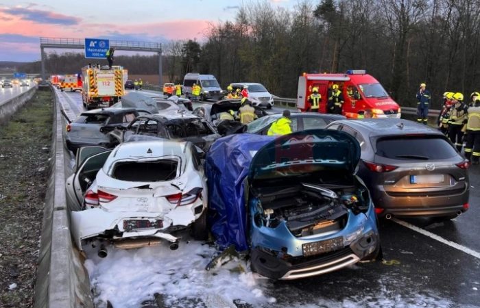 Две лица загинаа, а 27 се повредени во верижен судар на околу 40 возила на автопатот во близина на Вирцбург, во германската област Баварија.