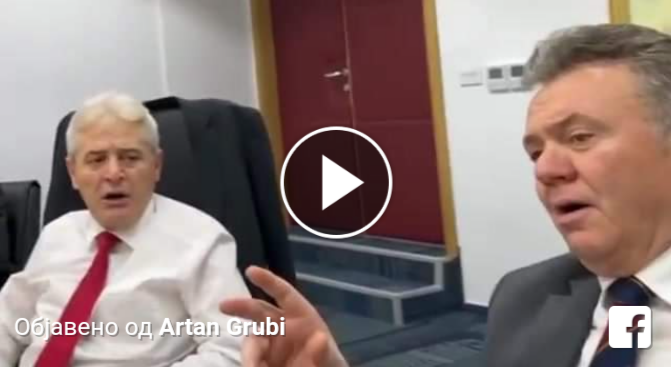 Првиот вицепремиер Артан Груби објави нова снимка на социјалните мрежи на која лидерот на ДУИ, Али Ахмети заедно со познатиот косовски пејач Илир Шаќири, пеат патриотска песна.