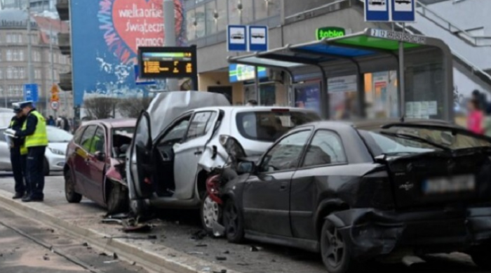 Неколку лица се повредени денеска кога автомобил влетал во толпа луѓе кои чекале на трамвајската станица во северозападниот полски град Шчеќин пред да се судри со три други возила, јавија локалните медиуми.